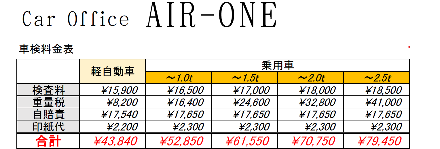 車検代行料金表
