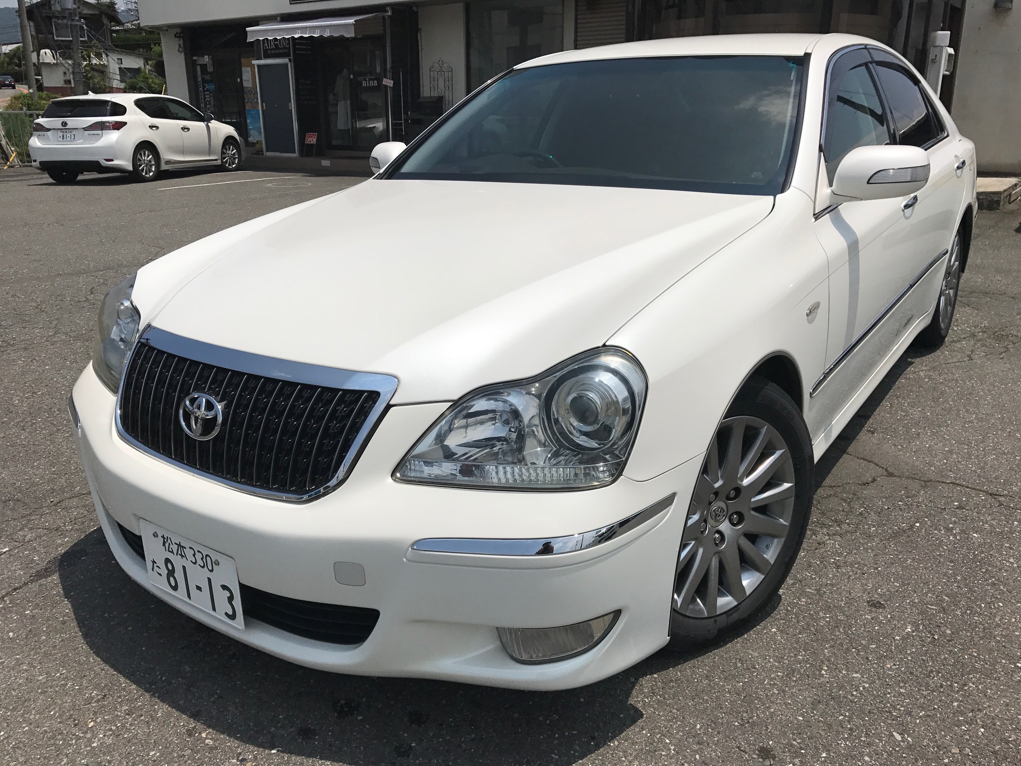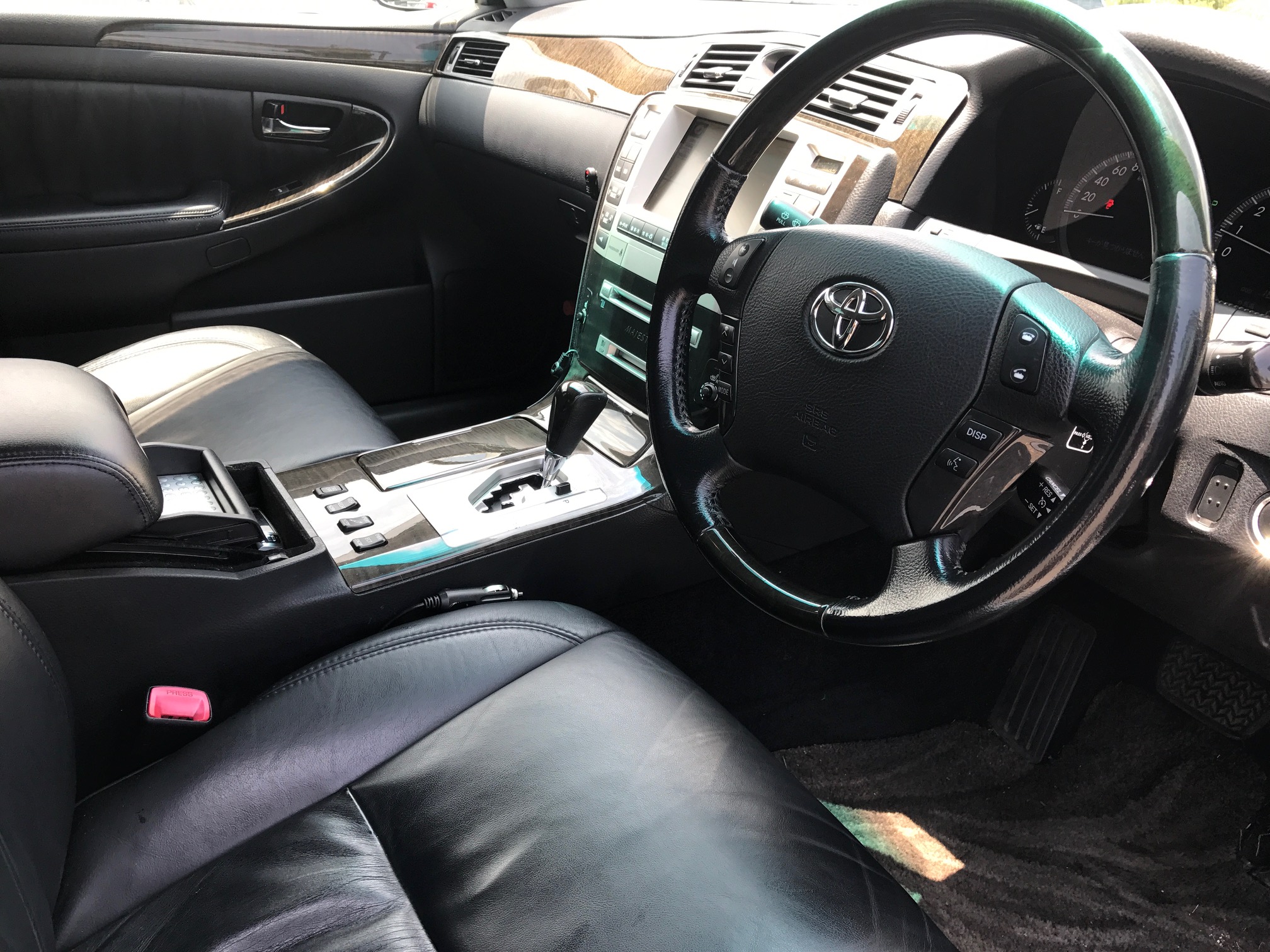 - フロントバンパーグリル後期仕様 スマートキープッシュスタート 純正DVDナビ ビルトインETC バックカメラ フルセグチューナー 本革Pシート プラズマクラスター シートメモリー ヘッドアップディスプレイ エアサスコントローラー TVキット クリーンボックス リアモニター リア三面スモークフィルム