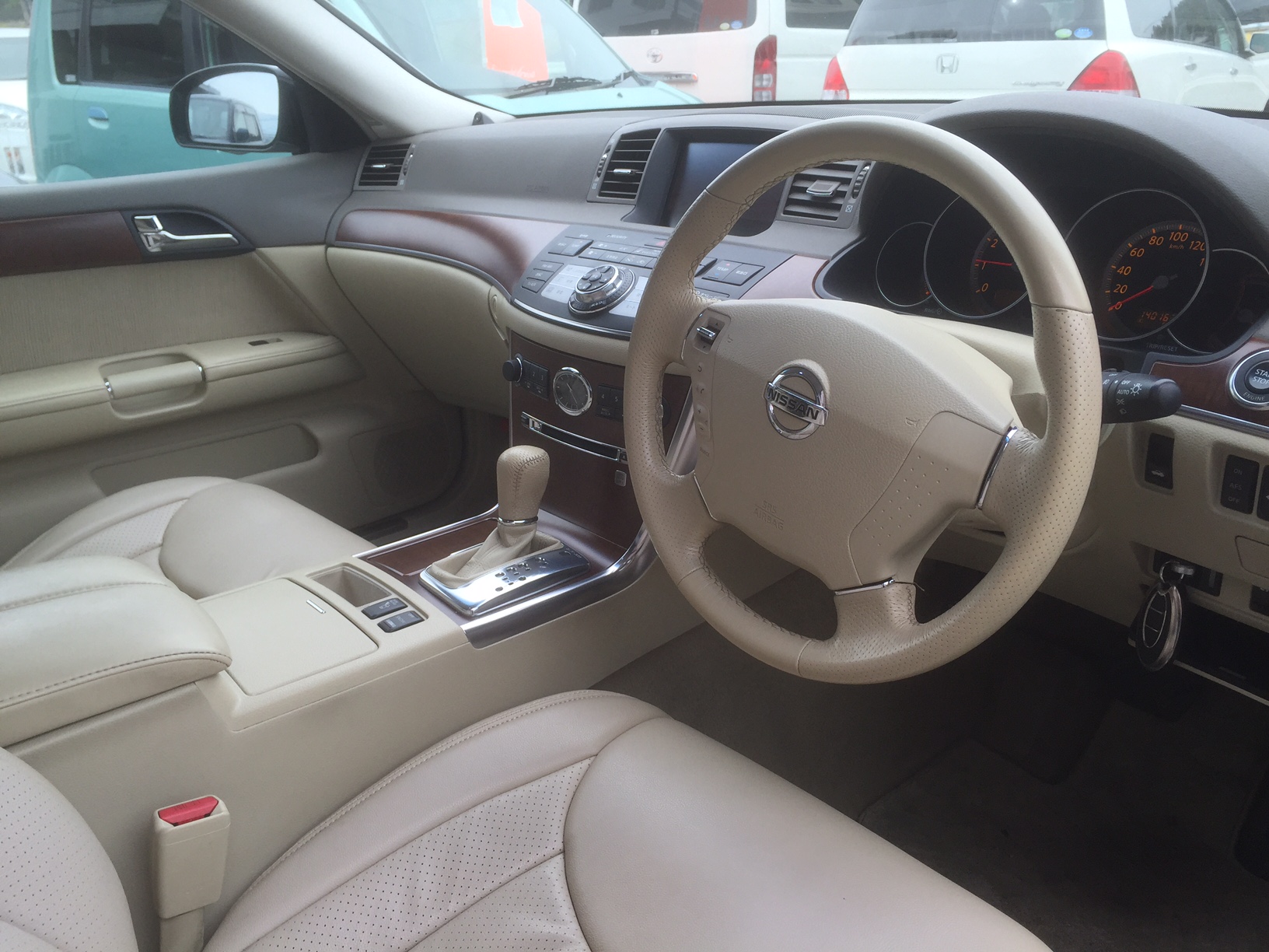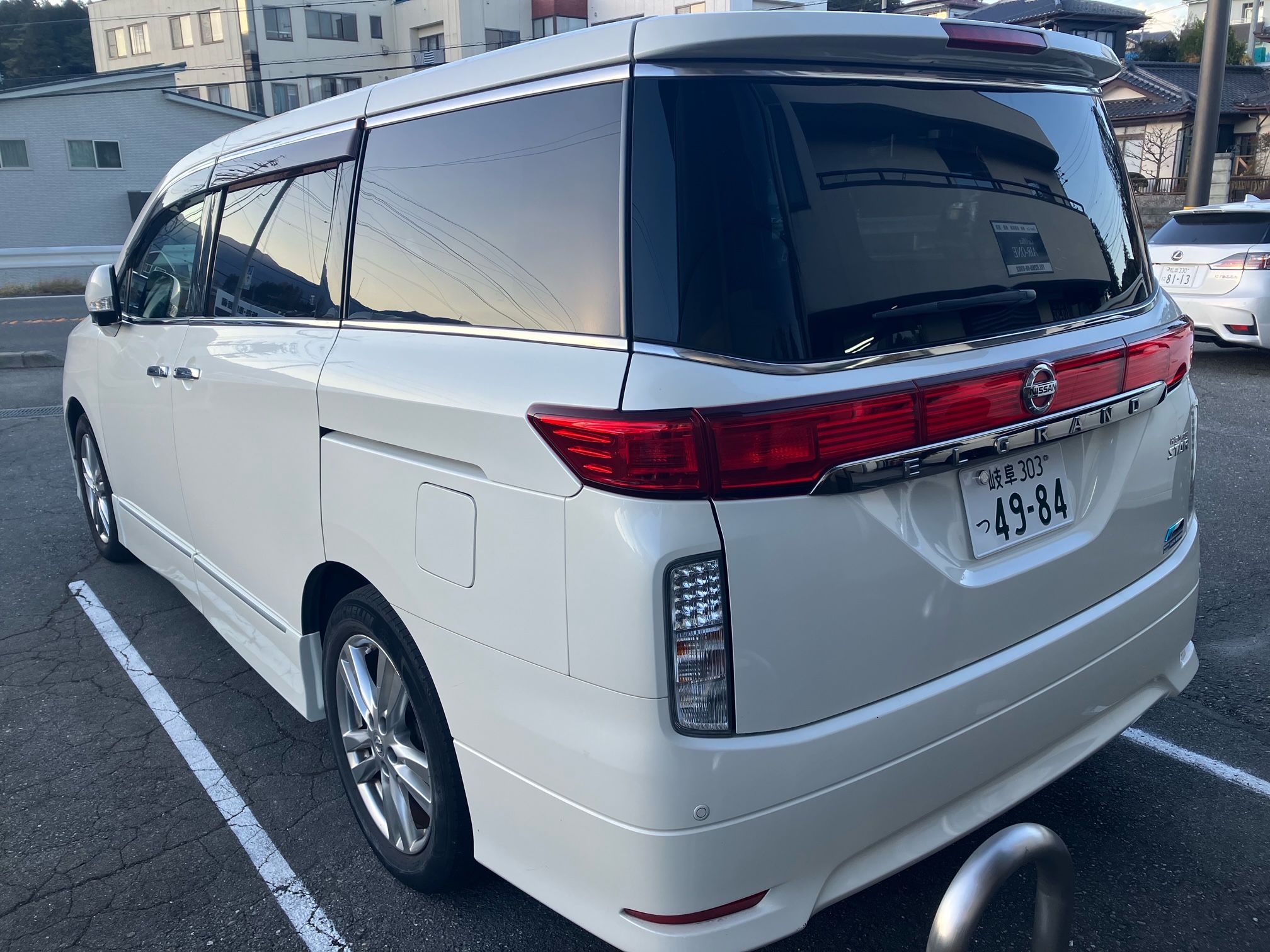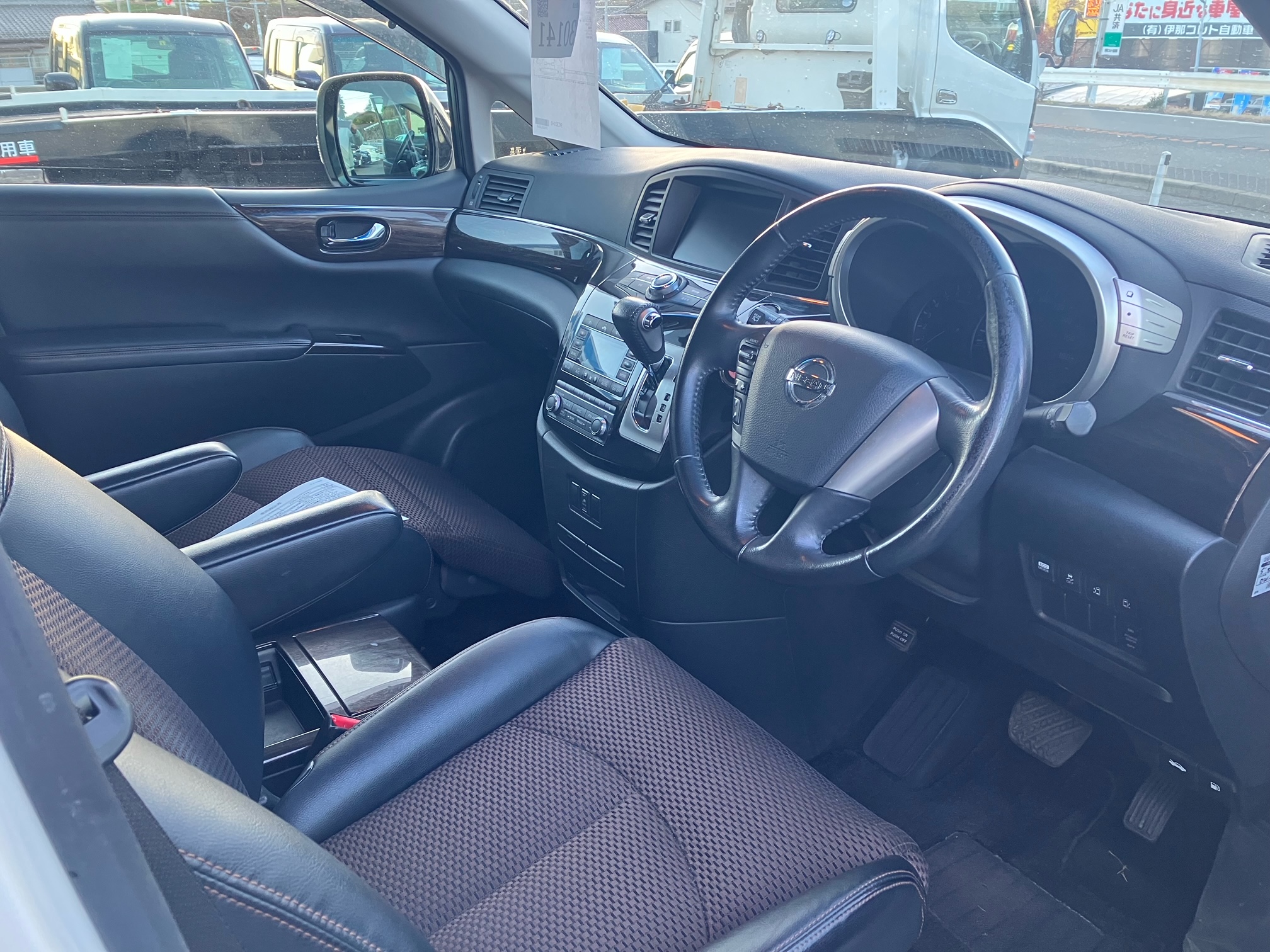 - 純正DVDナビ ビルトインETC バックカメラ サイドカメラ インテリジェントキー パーソナルドライビングポジション リアスモークフィルム トランクスルー AFS付HID フォグHID シートカバー